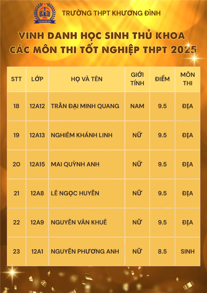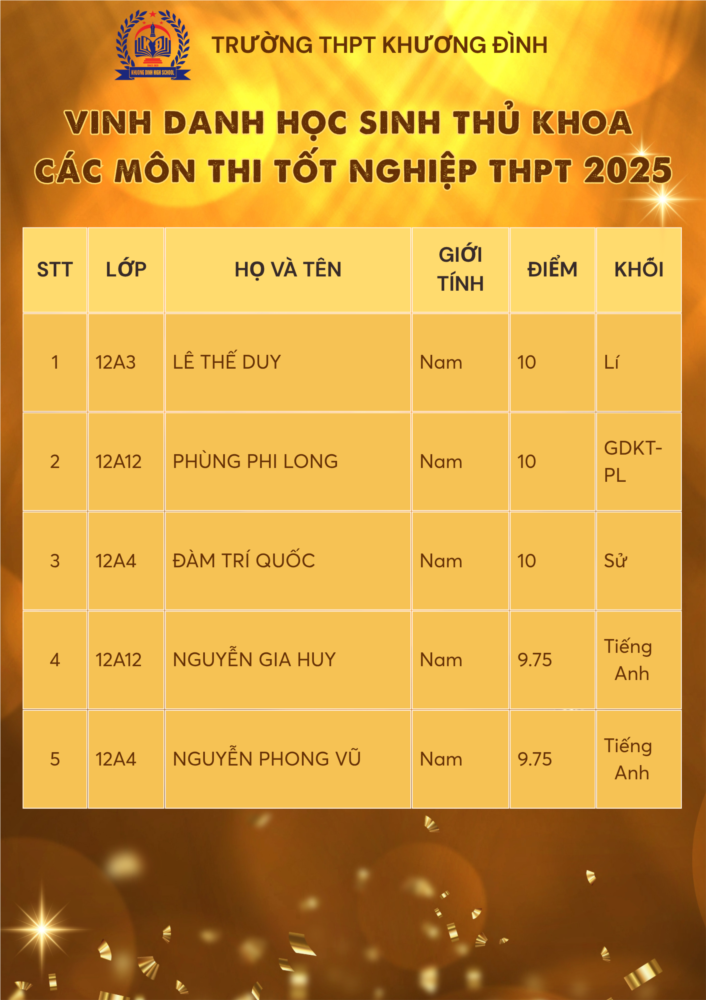 👏 Đặc biệt, xin chúc mừng những học sinh đã đạt thủ khoa các môn, các điểm 10, điểm 9 nối tiếp nhau chính là kết quả của một hành trình dài nỗ lực, kỷ luật và bền bỉ, ghi dấu ấn của bản thân và khát vọng chinh phục tri thức.