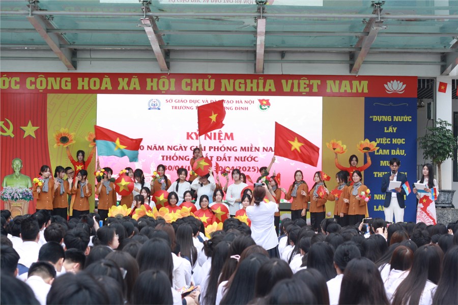 Sáng ngày 28/4/2025, Trường THPT Khương Đình long trọng tổ chức Lễ kỷ niệm 50 năm Ngày Giải phóng miền Nam, thống nhất đất nước (30/4/1975 – 30/4/2025. Trong không khí trang nghiêm và xúc động của buổi lễ, thầy trò Trường THPT Khương Đình cùng nhau ôn lại những dấu son chói lọi của dân tộc, thể hiện sự tri ân với các thế hệ đi trước, đồng thời khẳng định quyết tâm của thế hệ trẻ hôm nay: Tiếp nối truyền thống, dựng xây quê hương ngày càng giàu mạnh.