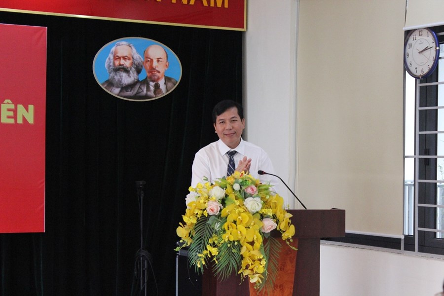 Đồng chí Hoàng Đình Xuân – Bí thư Chi bộ – Hiệu trưởng nhà trường phát biểu tại Lễ kết nạp Đảng viên mới