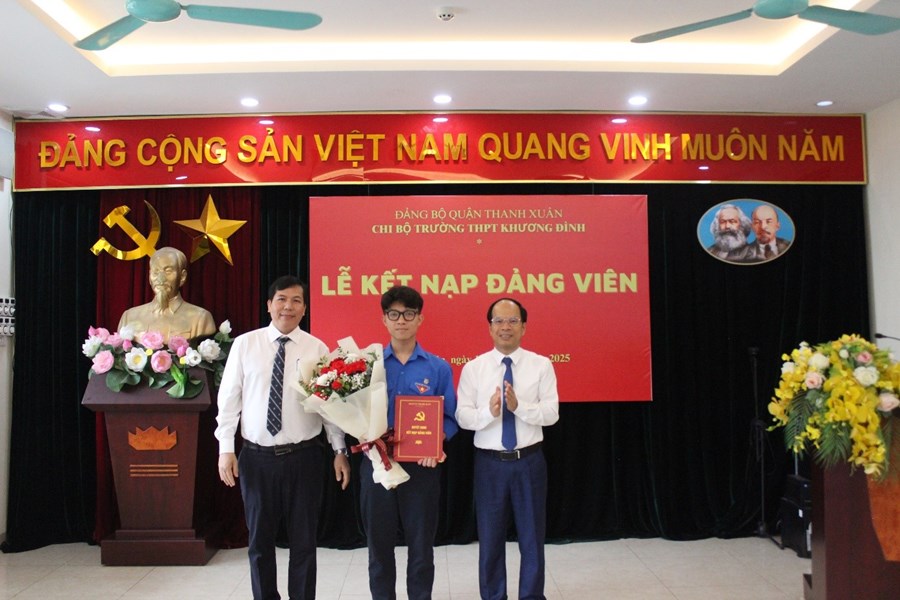 Chiều ngày 19/5/2025, hoà chung không khí cả nước kỷ niệm 135 năm ngày sinh Chủ tịch Hồ Chí Minh vĩ đại, Chi bộ Trường THPT Khương Đình long trọng tổ chức Lễ kết nạp Đảng viên mới cho 6 học sinh lớp 12 – những đoàn viên ưu tú tiêu biểu trong học tập, rèn luyện và hoạt động phong trào: