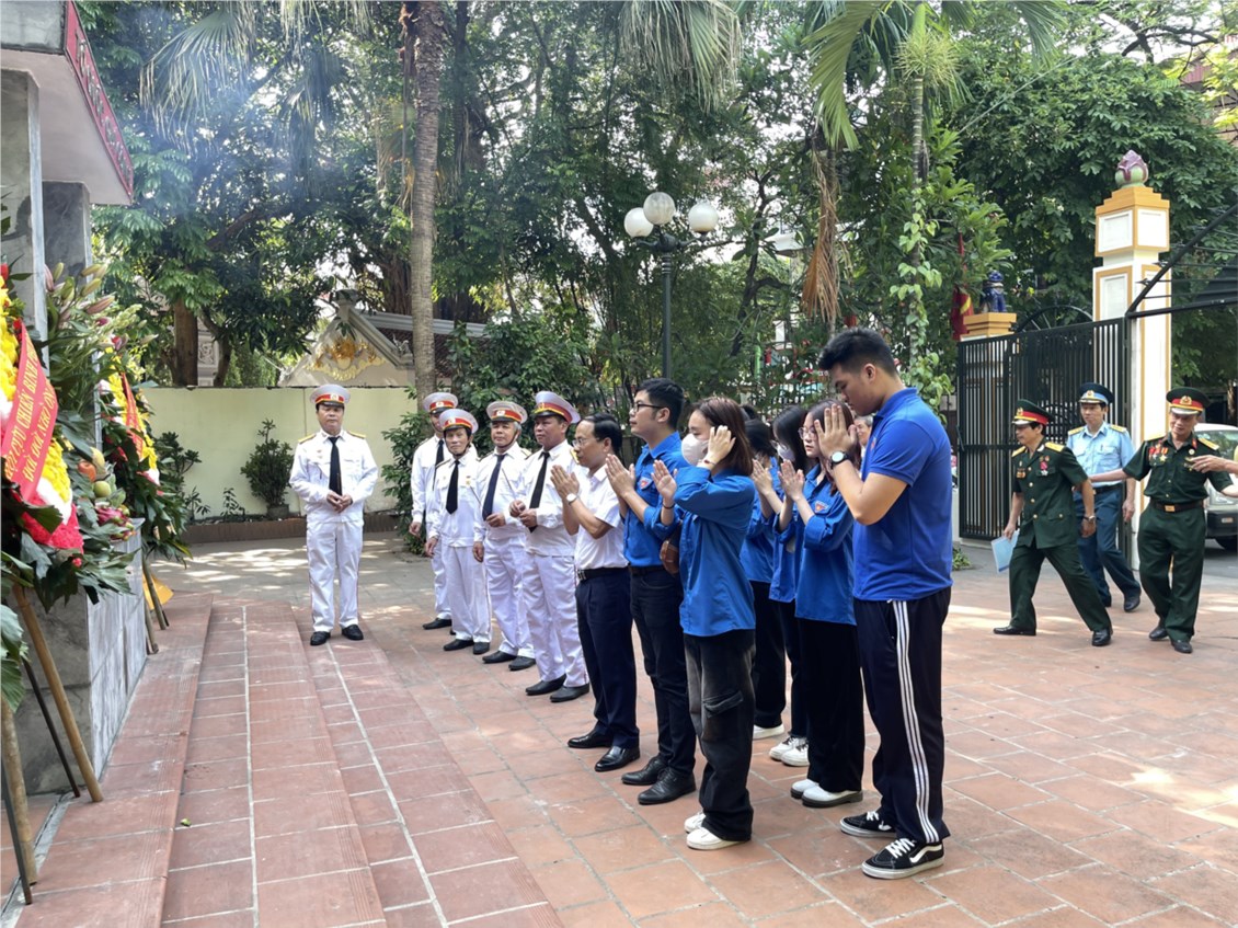 Thầy giáo Hoàng Đình Xuân - Bí thư Chi bộ - Hiệu trưởng cùng các đồng chí Giáo viên và Đoàn viên Thanh niên nhà trường dâng hương các Anh hùng liệt sỹ.