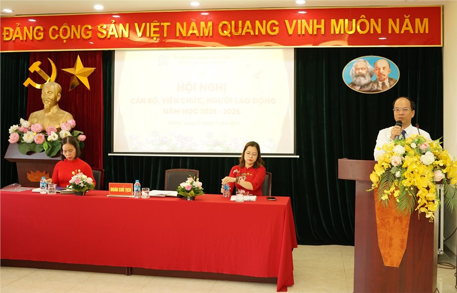 Hội nghị có sự tham dự đầy đủ của Ban giám hiệu, cùng toàn thể cán bộ, giáo viên, nhân viên trong Nhà trường. Mở đầu chương trình, Nhà giáo Ưu tú - Tiến sĩ Hoàng Đình Xuân - Bí thư Chi bộ, Hiệu trưởng nhà trường đã trình bày báo cáo tổng kết năm học 2024-2025, đồng thời trình bày kế hoạch nhiệm vụ trọng tâm cho năm học 2025-2026.